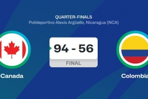 體育資訊8月29日訊 男籃美洲杯1/4決賽,加拿大男籃94比56大勝哥倫比亞男籃,晉級4強(qiáng)。
