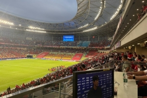 黃健翔在個人微博寫道:成都蓉城x上海海港。第一次來鳳凰山體育場解說。第N次來成都解說比賽。解說席放在這個位置的球場,個人還是第一次遇到,視野倒是不錯,體驗很獨特。球場很漂亮!