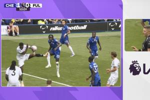 比賽第50分鐘,查洛巴傳中,塞塞尼翁禁區(qū)內(nèi)手球,主裁場(chǎng)邊回看中。