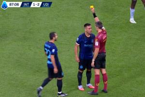 體育資訊09月01日訊 國米vs烏迪內(nèi)斯第87分鐘,勞塔羅被吹犯規(guī),勞塔羅非常生氣地向裁判質(zhì)疑判罰,被裁判出示黃牌。