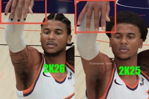 有網(wǎng)友細(xì)心發(fā)現(xiàn)指出,在2K26的游戲畫(huà)面中,2K給杰倫-格林細(xì)心地在其指甲蓋上涂了指甲油;而在2K25中,杰倫-格林是沒(méi)有指甲油的。