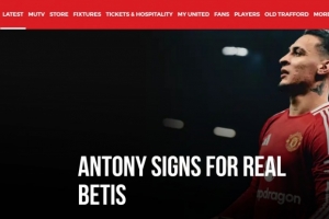 體育資訊9月2日訊 巴西邊鋒安東尼已經(jīng)官宣加盟貝蒂斯,曼聯(lián)官網(wǎng)也發(fā)文送上告別: