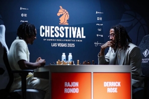體育資訊07月14日訊 近日,“國(guó)際象棋節(jié)”比賽在拉斯維加斯進(jìn)行,前NBA球星隆多和羅斯到場(chǎng)進(jìn)行對(duì)壘。