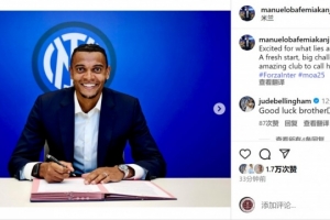 阿坎吉社媒曬出與國(guó)米簽約的照片,配文:“對(duì)即將在國(guó)米迎來的新篇章感到興奮。全新的開始,巨大的挑戰(zhàn),以及一個(gè)我可以稱之為家的偉大俱樂部!”