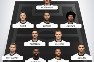 后衛(wèi):米特爾施塔特(斯圖加特)、呂迪格(皇馬)、若納坦-塔(拜仁)、納姆迪-科林斯(法蘭克福)