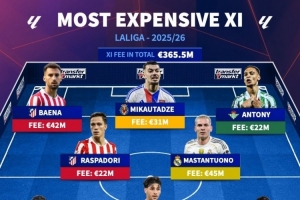 西甲今夏最貴引援陣容(轉(zhuǎn)會(huì)費(fèi))