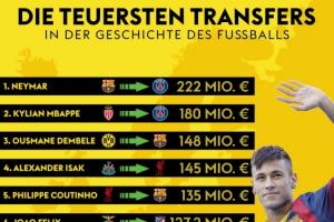 體育資訊09月04日訊 夏窗已經(jīng)結(jié)束,德天空統(tǒng)計了最新的足壇歷史最貴轉(zhuǎn)會排行榜,其中,伊薩克位居第四,維爾茨位列第八,內(nèi)馬爾仍居首。