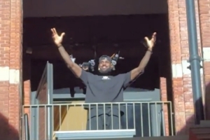 在上海站耐克官方舉行的“Forever King”活動(dòng)開始前,詹姆斯在4樓的陽臺(tái)上張開雙臂向全場球迷問好。