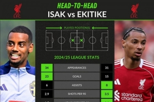伊薩克(紐卡,25歲):34場英超23球6助攻,場均2.9射門、1.2關(guān)鍵傳球,傳球成功率77.1%,5次當(dāng)選全場最佳,場均7.30分