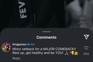 湖人球星詹姆斯評論道:“小小的挫折成就大大的回歸!好好休養(yǎng),恢復健康,做你自己!???????????♂???”