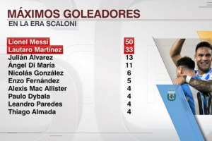 據(jù)ESPN統(tǒng)計(jì),斯卡洛尼執(zhí)教以來(lái),梅西打進(jìn)50球阿根廷隊(duì)內(nèi)最多,勞塔羅攻入33球第二多。