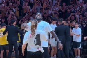 勒布朗與勒布朗-夢(mèng)!李夢(mèng)亮相詹姆斯中國(guó)行并上場(chǎng)比賽