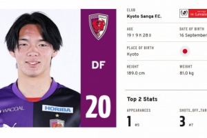 喜多壹也出生于2005年9月16日,身高1.89米,去年升入京都不死鳥一線隊(duì),已經(jīng)為球隊(duì)出戰(zhàn)5場比賽,但是沒有在J聯(lián)賽亮相過。