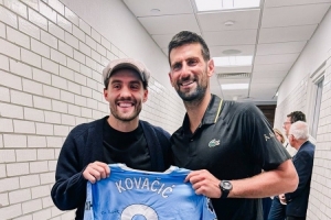 科瓦西奇因?yàn)榇饲敖邮苁中g(shù),目前仍然在恢復(fù)當(dāng)中,他也借此機(jī)會(huì)前往美國觀看美網(wǎng),與德約科維奇合影并將自己的曼城球衣贈(zèng)送給他。