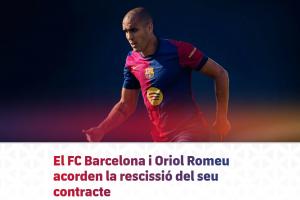 巴塞羅那足球俱樂部與一線隊球員奧里奧爾-羅梅烏在轉會窗口期內達成協(xié)議,終止其與俱樂部的合同。