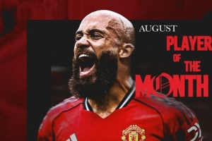 姆伯莫8月為曼聯(lián)出戰(zhàn)4場(chǎng)比賽,打進(jìn)2球,曼聯(lián)官方曬出海報(bào),宣布他當(dāng)選8月份隊(duì)內(nèi)最佳球員。