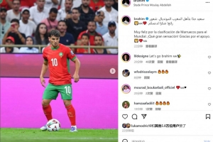 迪亞斯此役為摩洛哥首發(fā)出戰(zhàn),他在社交媒體上曬出比賽照片,配文:“為摩洛哥晉級世界杯感到無比欣喜,多么美妙的感覺!感謝大家的支持?!?/p>
