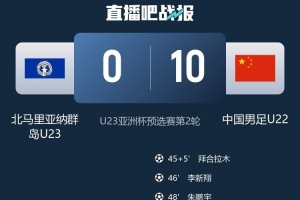 體育資訊9月6日訊 U23亞洲杯預(yù)選賽小組賽第2輪,U22國足以10-0的比分擊敗北馬里亞納群島U23,下輪將和澳大利亞U23爭奪小組頭名。