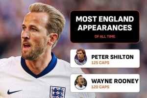 統(tǒng)計表明,這是凱恩生涯第108次為英格蘭出場,現(xiàn)在他已經成為英格蘭隊史出場第五多的球員,僅次杰拉德(114)、貝克漢姆(115)、魯尼(120)和希爾頓(125)。