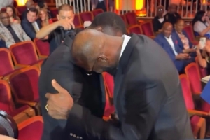 詹姆斯更新Instagram Story動態(tài),轉(zhuǎn)發(fā)他在名人堂現(xiàn)場擁抱韋德的片段,并評論道:“很高興見到我的兄弟!?×??”