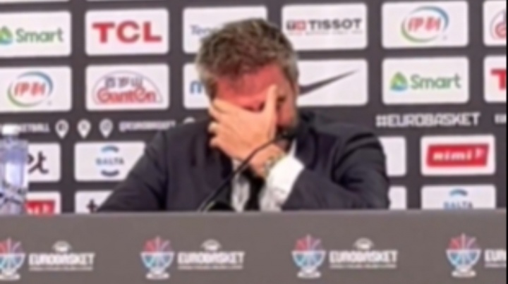 賽后發(fā)布會(huì)現(xiàn)場,意大利主教練波澤科宣布辭職后情緒失控,含淚離開了發(fā)布會(huì)現(xiàn)場。