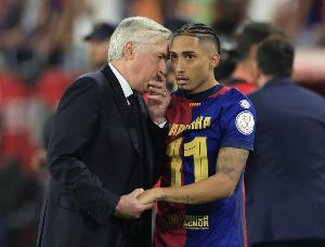 這位前鋒在此次國際比賽日期間備受關(guān)注,成為西甲聯(lián)賽唯一被征召的球員。巴薩甚至對其使用頻率表示擔(dān)憂,本賽季他已出戰(zhàn)總比賽時間的84%(270分鐘中登場229分鐘)。但拉菲尼亞正是這支新巴西隊的領(lǐng)袖之一,這位更衣室重量級人物在綠茵場上被視為無袖標(biāo)的隊長,安切洛蒂對其信任度甚至與維尼修斯等同級別核心持平。