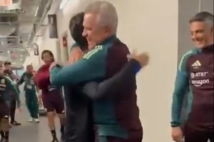 體育資訊9月9日訊 足球友誼賽,韓國隊將對陣墨西哥隊。比賽之前,李剛?cè)逝c恩師哈維爾-阿吉雷重逢。