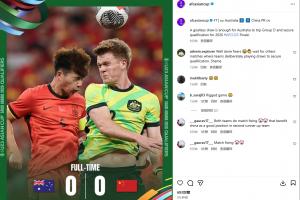 體育資訊09月09日訊 U22國足0-0戰(zhàn)平澳大利亞,賽后亞足聯(lián)發(fā)文報告戰(zhàn)果。
