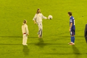 迎來40歲生日的莫德里奇本場比賽之后留在場上,與自己的兩個女兒顛球互傳,從視頻中看,莫德里奇的大女兒顛球熟練。