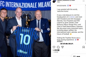 因凡蒂諾寫道:我這次的經(jīng)歷可以用“回家”來形容。非常榮幸能訪問國(guó)米總部,并與俱樂部CEO馬洛塔、副主席兼國(guó)際足壇傳奇薩內(nèi)蒂、首席營(yíng)收官喬治-里奇以及首席參謀馬克西米里亞諾-卡塔內(nèi)塞會(huì)面。我們討論了許多重要議題,包括球員福祉、國(guó)際比賽日賽程以及足球的未來等等。參觀俱樂部榮譽(yù)室是一次深受觸動(dòng)的經(jīng)歷!