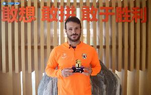 對陣國安上演大四喜的卡扎領(lǐng)取體育資訊第23輪最佳球員獎杯
