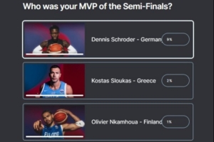 體育資訊9月13日訊 男籃歐錦賽半決賽已落下帷幕,歐錦賽官方發(fā)起了半決賽MVP投票,截至目前,土耳其男籃球員奧斯馬尼以85%的票數(shù)斷檔領(lǐng)先。