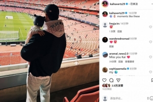 本場(chǎng)比賽因傷缺戰(zhàn)的哈弗茨也抱著自己的孩子來到現(xiàn)場(chǎng)觀戰(zhàn),球員在個(gè)人社媒曬照寫道:“??????就像這樣的時(shí)刻!”