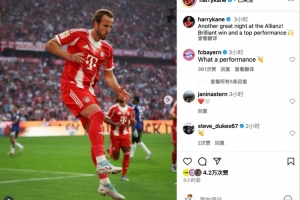 體育資訊9月14日訊 德甲第3輪,拜仁主場5比0橫掃漢堡。賽后,在本場比賽中梅開二度的凱恩更新社媒慶祝球隊大勝。