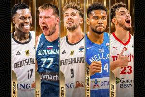 本屆歐錦賽最佳陣容為:施羅德(德國(guó))、小瓦格納(德國(guó))、申京(土耳其)、阿德托昆博(希臘)、東契奇(斯洛文尼亞)