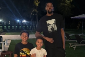 照片中杜蘭特和奧古斯汀的兩個兒子合影留念。KD和奧古斯汀是得州大學(xué)的前隊友,而后者在休斯敦有房產(chǎn),這張照片就可能是拍于奧古斯汀休斯敦的家中。