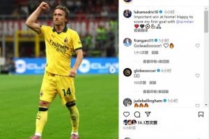 莫德里奇社媒曬出比賽照片,并寫(xiě)道:“在主場(chǎng)取得重要?jiǎng)倮『芨吲d攻入我在米蘭的首粒進(jìn)球?!?/p>