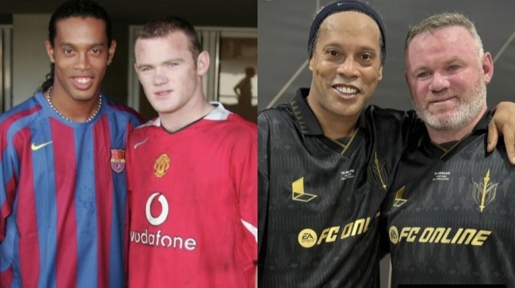 有網友曬出了魯尼和小羅在2005年為足球游戲FIFA 06拍攝廣告時的合影作為對比,顯然時光在兩人的身上都留下足夠的痕跡。