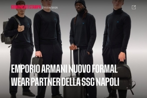 安普里奧-阿瑪尼與那不勒斯的合作關(guān)系成為了雙方的身份體現(xiàn),這兩個意大利杰出品牌聯(lián)系在一起。(以上為官網(wǎng)公告)
