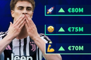 20歲的伊爾迪茲目前身價(jià)5000萬歐,德轉(zhuǎn)給出的下次更新身價(jià)分別有6000萬歐、7000萬歐、7500萬歐以及8000萬歐。