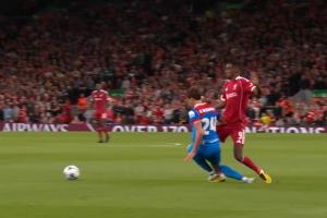 體育資訊09月18日訊 歐冠聯(lián)賽階段首輪,利物浦主場對陣馬競。31分鐘,伊薩克分球后被勒諾爾芒踩到,痛苦倒地,緩了一會后伊薩克繼續(xù)比賽。