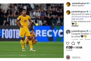 此役喬布-貝林厄姆替補(bǔ)出場(chǎng),上演歐冠首秀,他在社交媒體上曬出比賽照片,并寫(xiě)道:“很自豪在多特上演歐冠首秀,一個(gè)新的里程碑,也是學(xué)習(xí)更多的開(kāi)始?!?/p>