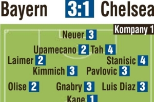 體育資訊9月18日訊 拜仁在本輪歐冠焦點(diǎn)戰(zhàn)3-1力克切爾西,《圖片報(bào)》在賽后為兩隊(duì)球員評(píng)分,凱恩獲評(píng)最佳1分。