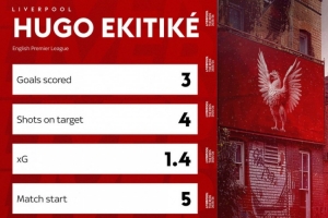 據(jù)媒體統(tǒng)計(jì),?;倏擞⒊_局5場比賽皆首發(fā)出戰(zhàn),射正4次,預(yù)期進(jìn)球1.4粒,打進(jìn)3球。