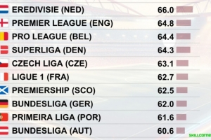 體育資訊9月20日訊 CIES盤點各聯(lián)賽球員平均高強度跑動數(shù)據(jù),荷甲第一。