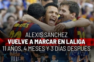 《馬卡報》統(tǒng)計表明,桑切斯時隔11年4個月零3天再一次在西甲破門,他上一次在西甲進球是2013-14賽季代表巴薩攻破馬競球門。