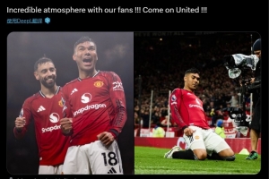 卡塞米羅曬出自己的賽場照,并配文:球迷們營造的氛圍簡直太棒了!?。〖佑吐?lián)?。?!