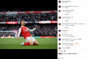 本場(chǎng)比賽馬丁內(nèi)利在替補(bǔ)登場(chǎng)后補(bǔ)時(shí)絕平,賽后他也在社媒曬出滑跪慶祝進(jìn)球照片,配文寫(xiě)道:“我們i繼續(xù)拼搏!”