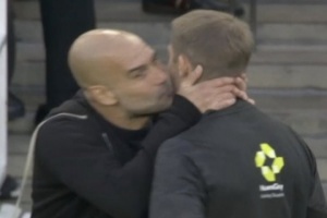 體育資訊9月22日訊?阿森納vs曼城第90分鐘,瓜迪奧拉場邊和裁判交流,還親了一口裁判的臉頰!