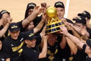 榮耀瞬間!香港金?;@球俱樂(lè)部大比分3-1戰(zhàn)勝長(zhǎng)沙勇勝,NBL聯(lián)賽兩連冠,球隊(duì)捧杯慶祝奪冠。